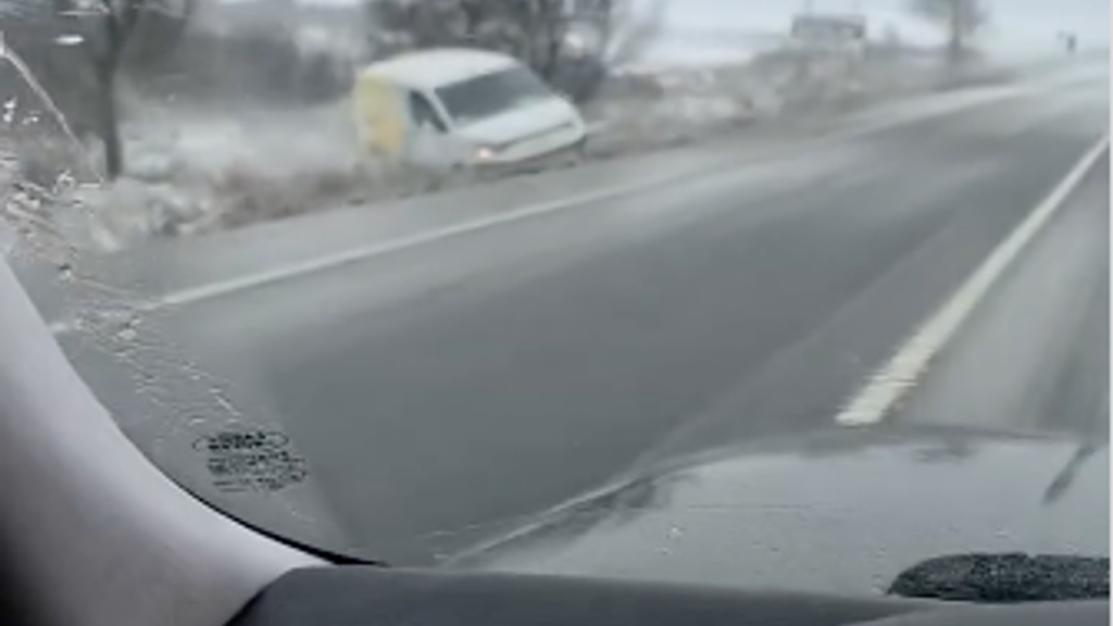 İstanbul’un Arnavutköy ilçesinde kar yağışı nedeniyle kaygan zeminde sürücüsünün kontrolden çıkan PTT aracı, çayırlık alana düştü. Sürücü kazayı ucuz atlatırken,